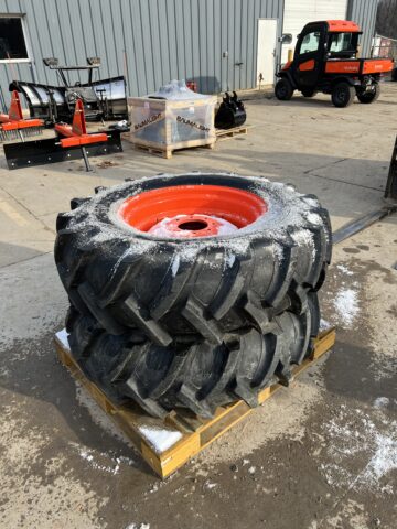 set of 2, 14.9-26 6ply rear ag tires and rims, 8 bolt, 8″ center, used very good condition