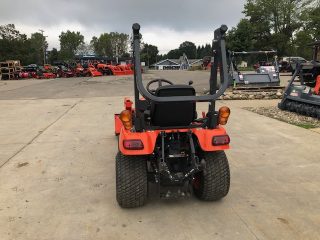 18hp kubota diesel engine, 2 speed hst, cat 1 3 point, 540 rear pto, 2500 rpm mid pto, 4×4 with locking rear differential, foldable rops, la203 loader, 48″ pin on bucket, block heater, hours estimated at under 100, s#0052
