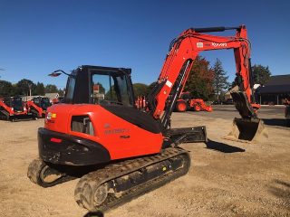 67hp kubota diesel engine, 26gpm hydraulic flow, 14,660lb breakout force, weight 18,000lbs, 87″ width, cab w/heat and air, angle blade, hydraulic thumb, max dig depth 15.1′,