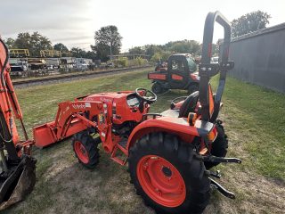 33hp kubota diesel engine, hst transmission, 4×4, 540 pto, cat 1 3 point hitch, ag tires, loaded rear tires, la526 loader, 66″ quick attach bucket, s#3007