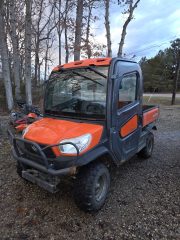 24hp kubota 3 cylinder diesel engine, 2 speed hst transmission, 4×4, hd tires, cab with heat and air, hydraulic dump bed, 2″ receiver, s#8571