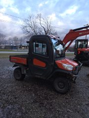 24hp kubota 3 cylinder diesel engine, 2 speed hst transmission, 4×4, hd tires, cab with heat and air, hydraulic dump bed, 2″ receiver, s#8571