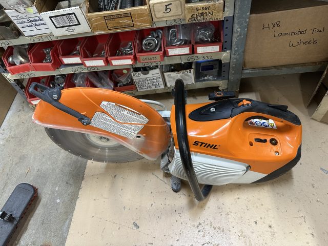66.7cc 2 stroke gas engine, 14″ cutting wheel, 4.9″ max cutting depth, 7/8″ arbor, 24oz fuel tank, water connection, s#2384